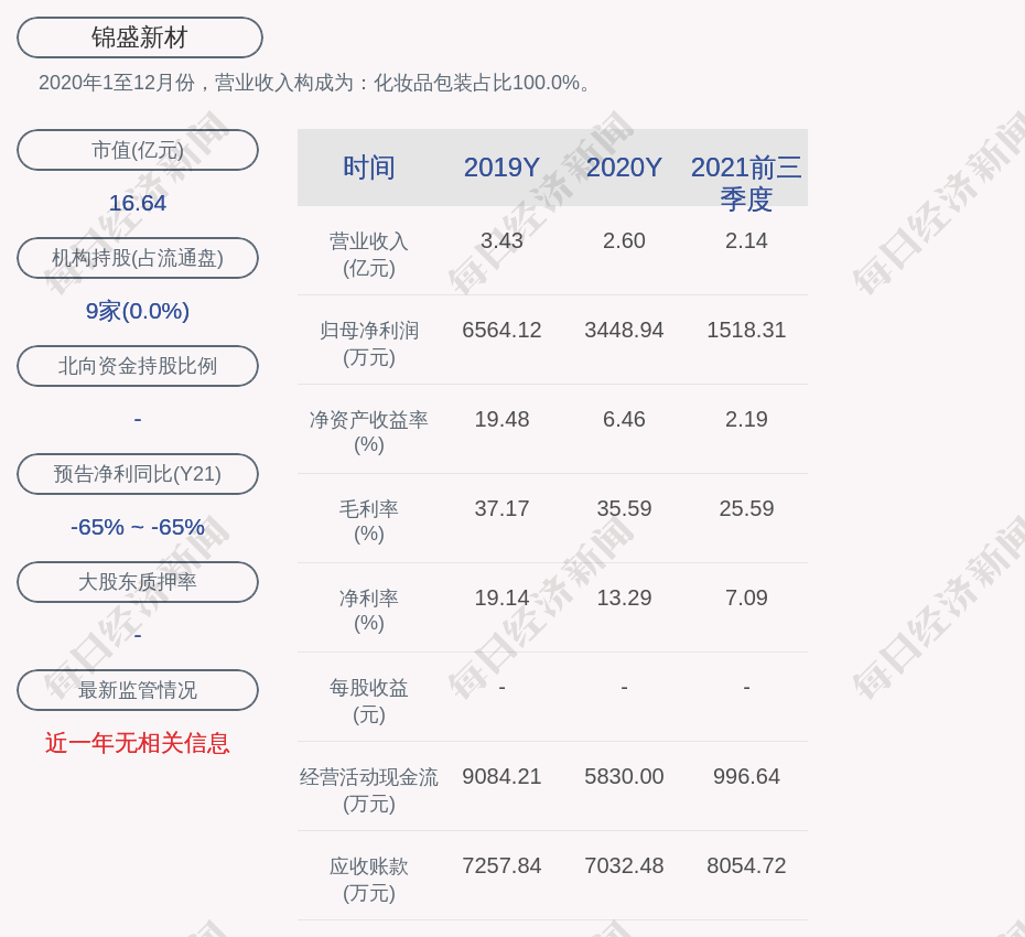 2020年1至12月份,锦盛新材的营业收入构成为:化妆品包装占比100.0%。