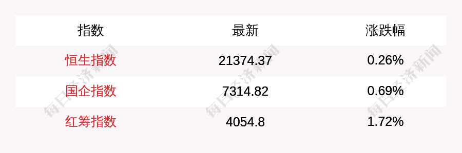 每经AI快讯:北京时间4月13日16:00,恒生指数收盘上涨55.24点,涨幅为0.26%,报收21374.37点;国企指数收盘上涨50.39点,涨幅为0.69%,报收7314.82点;红筹指数收盘上涨68.44点,涨幅为1.72%,报收4054.8点。南向资金当日净流入29.25亿港元。