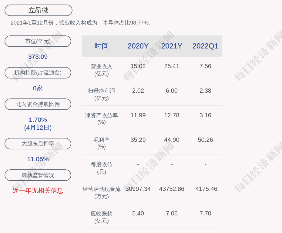 2021年1至12月份,立昂微的营业收入构成为:半导体占比98.77%。