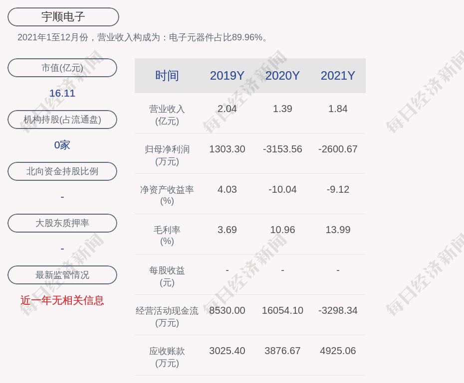 2021年1至12月份,宇顺电子的营业收入构成为:电子元器件占比89.96%。