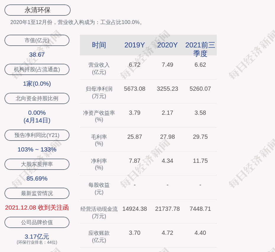 1. 永清环保近30日内北向资金持股量未发生变化;
