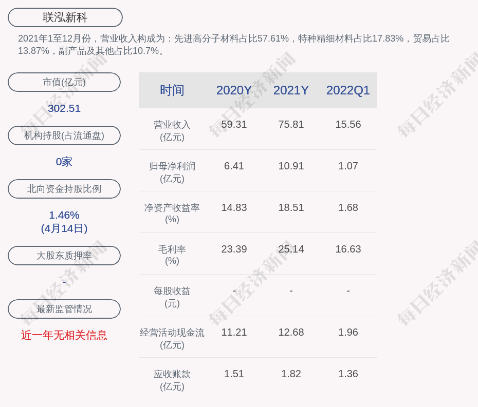 1. 联泓新科近30日内北向资金持股量增加150.15万股,占流通股比例增加0.49%;
