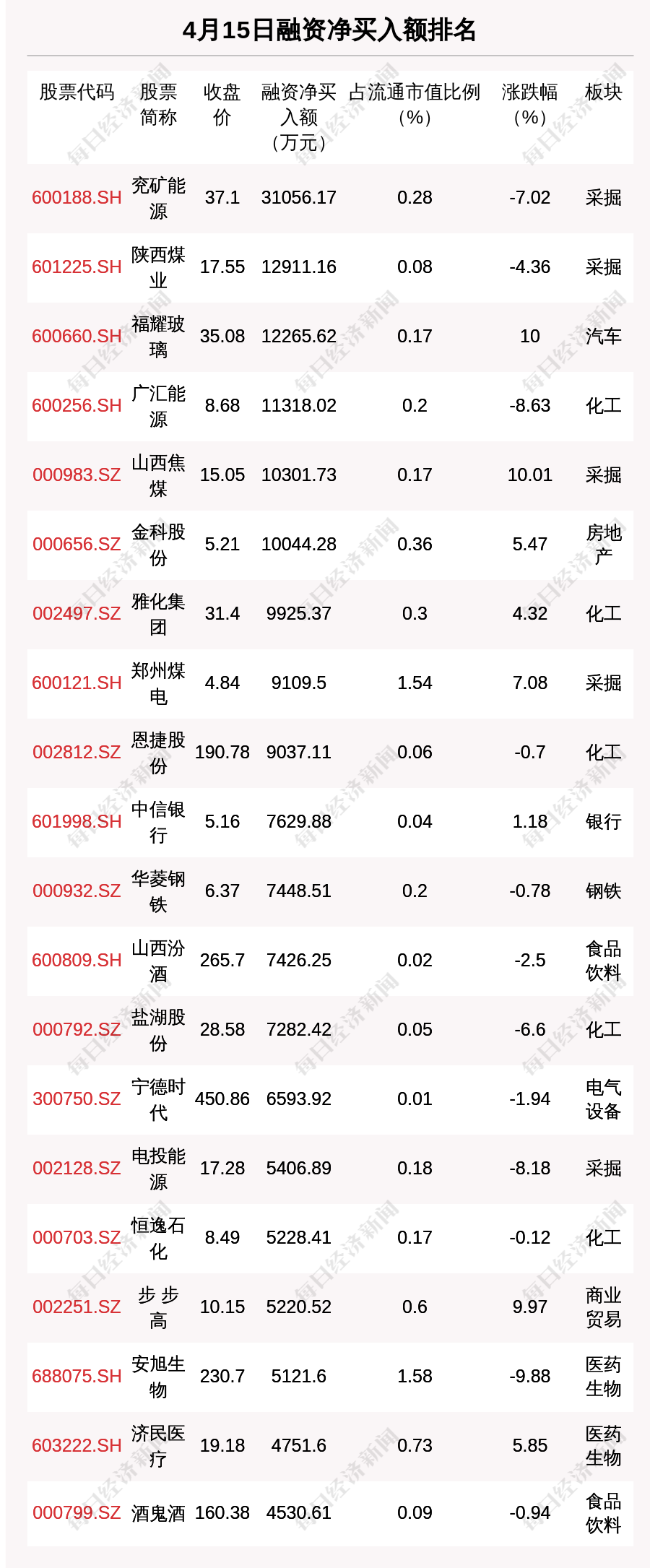 从融资资金净买入金额来看,共有6只个股净买入金额超亿元,其中兖矿能源、陕西煤业、福耀玻璃排名前三,买入金额分别为3.11亿元、1.29亿元、1.23亿元。