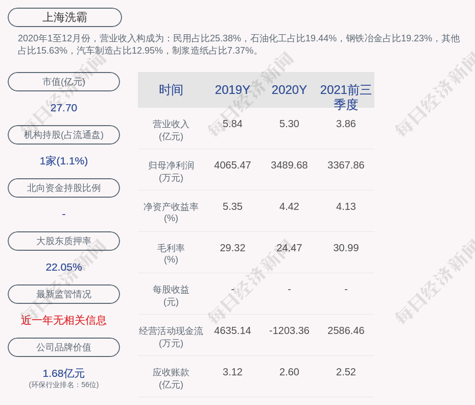 1. 近30日内无机构对上海洗霸进行调研。