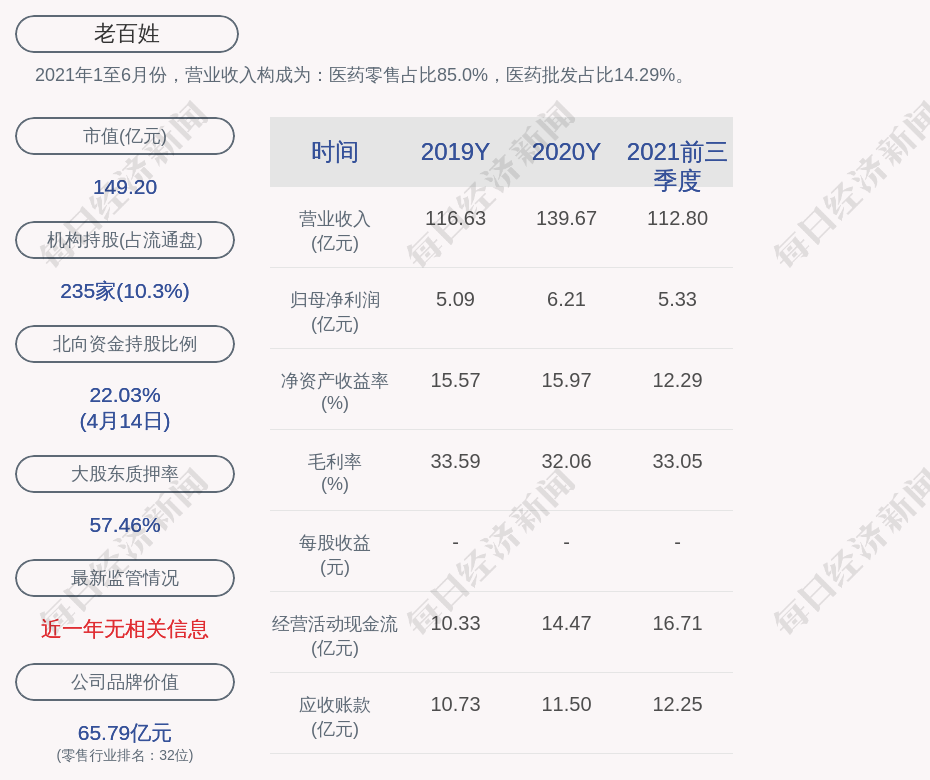 1. 老百姓近30日内北向资金持股量增加63.83万股,占流通股比例增加0.16%;