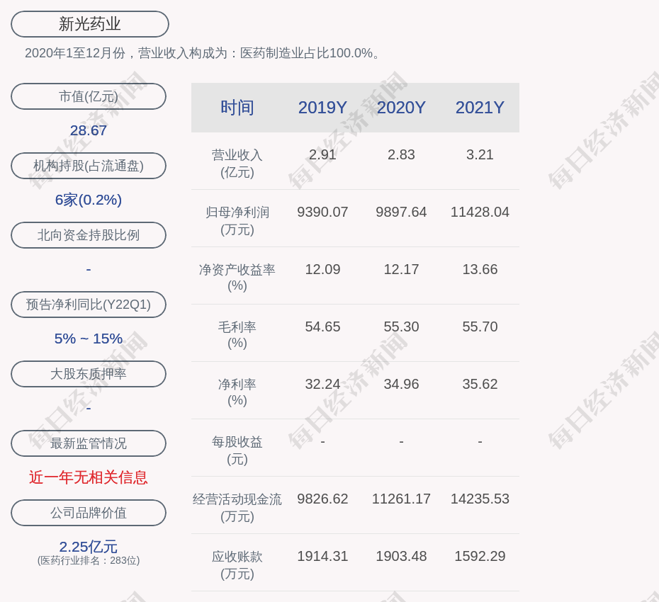 2020年1至12月份,新光药业的营业收入构成为:医药制造业占比100.0%。