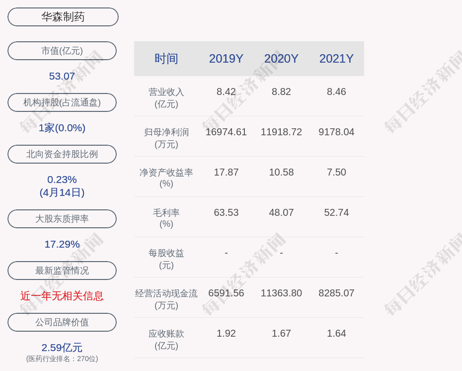 1. 华森制药近30日内北向资金持股量未发生变化;
