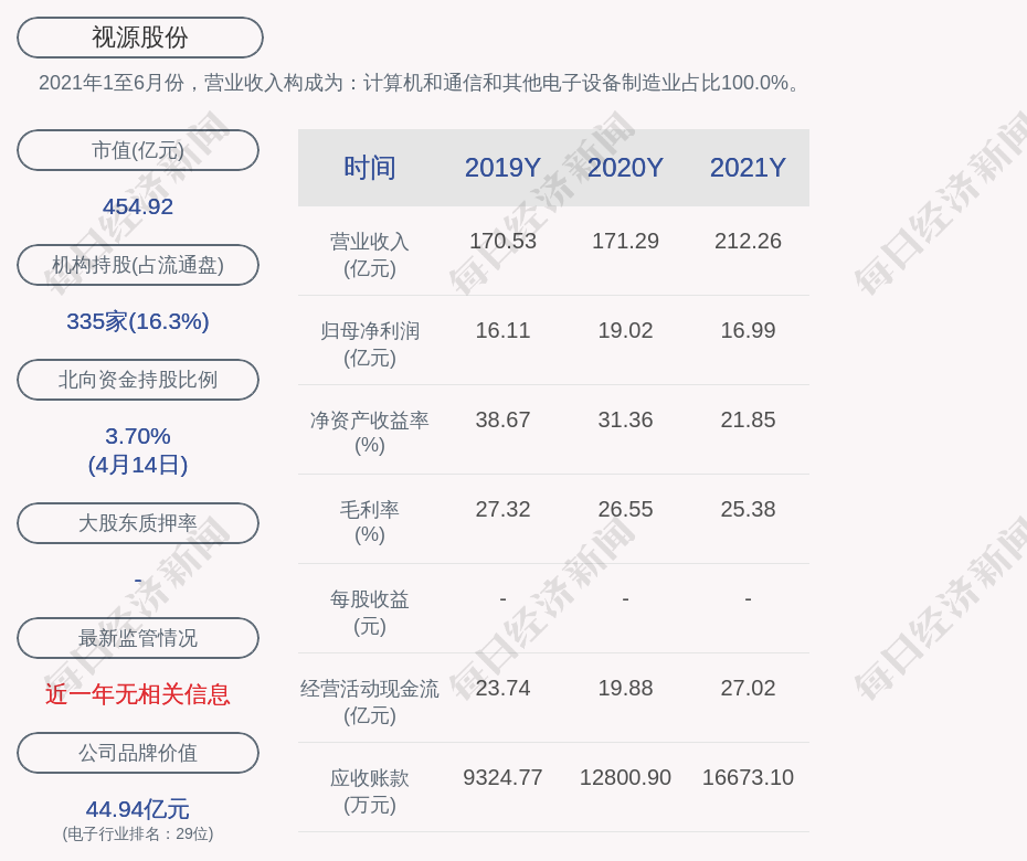 2021年1至6月份,视源股份的营业收入构成为:计算机和通信和其他电子设备制造业占比100.0%。