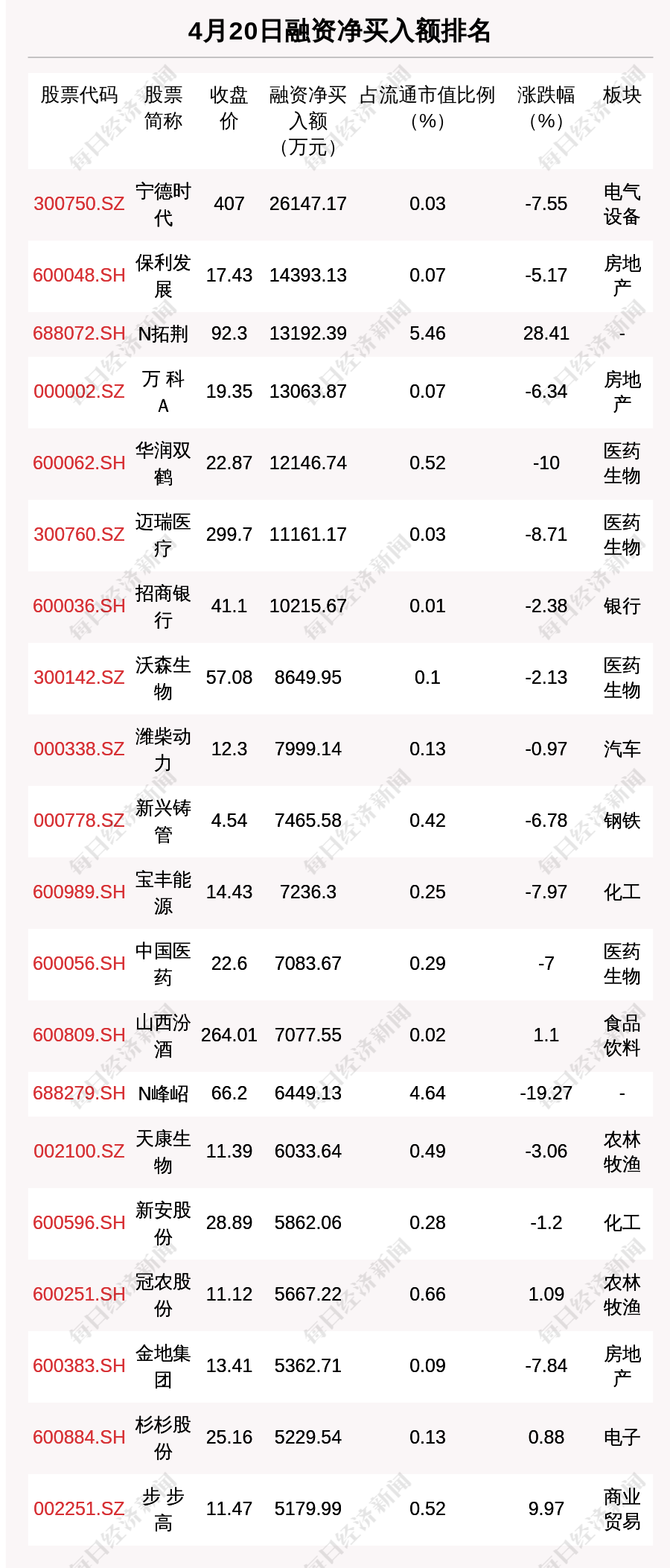 4月20日两市共有971只个股有融资资金净买入。共有37只股票融资净买入额占总成交金额比例超10%,其中欧林生物、联创光电、广日股份排名前三,占比分别为33.95%、20.28%、19.77%。