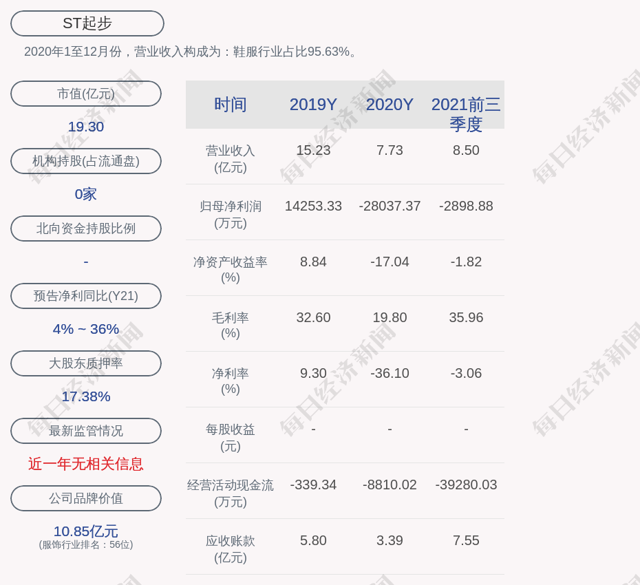 2020年1至12月份,ST起步的营业收入构成为:鞋服行业占比95.63%。