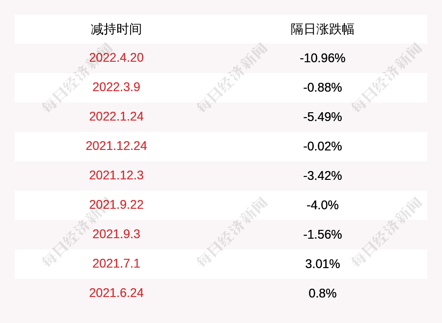 3. 富瀚微上次发布减持公告是2022年04月20日,第二个交易日下跌10.96%,富瀚微近一年共发布10次减持类公告。