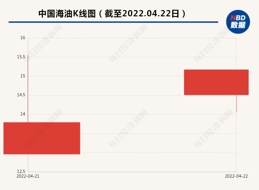 4月22日,中国海油(600938.SH)股价高开后震荡上行,截至发稿,中国海油报15.17元/股,涨幅10.01%,最新市值7167亿元。