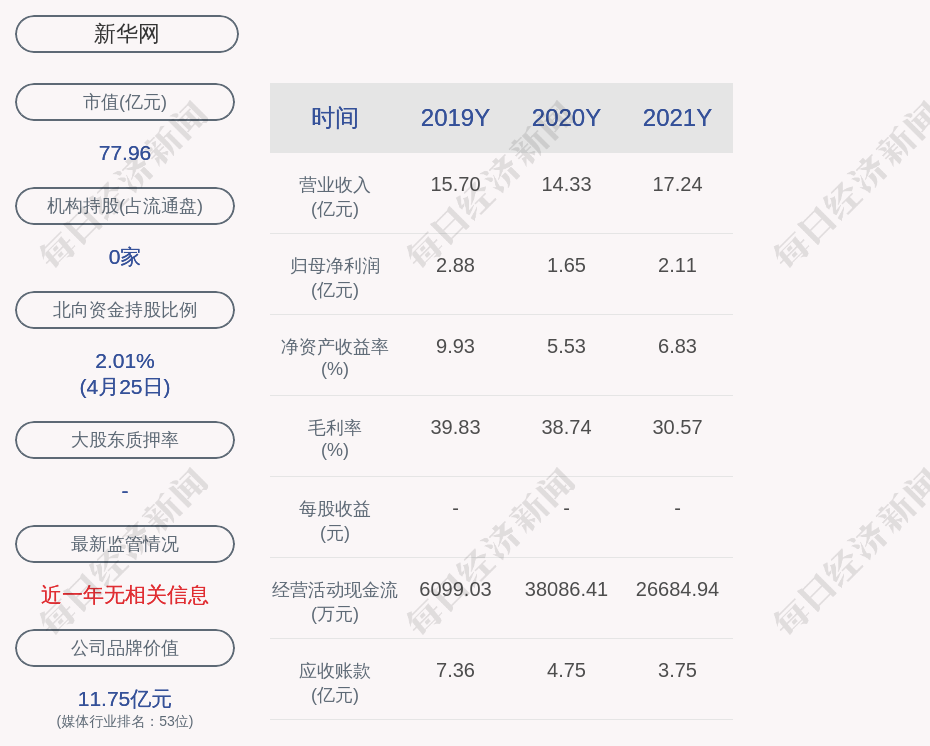 1. 新华网近30日内北向资金持股量增加8.74万股,占流通股比例增加0.02%;