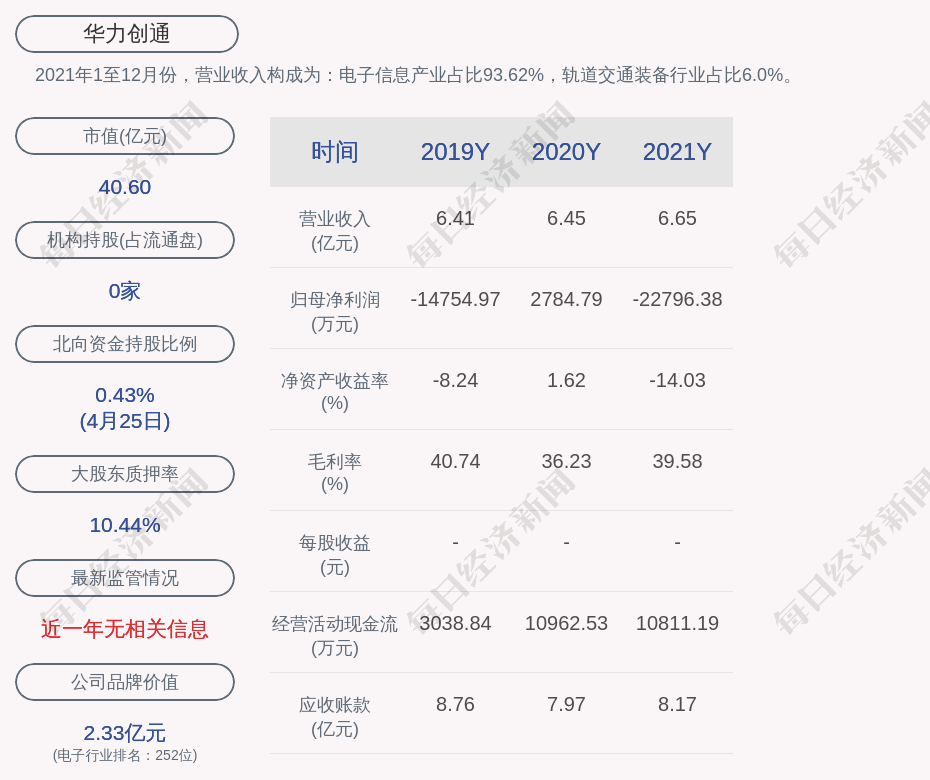 2021年1至12月份,华力创通的营业收入构成为:电子信息产业占比93.62%,轨道交通装备行业占比6.0%。