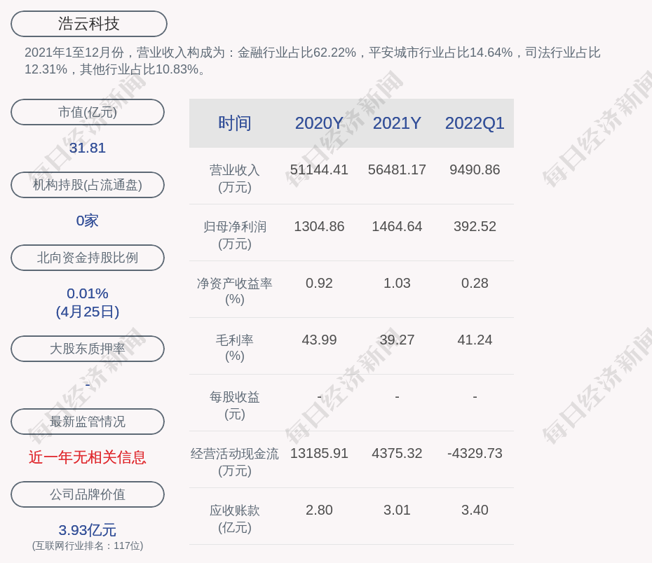 1. 浩云科技近30日内北向资金持股量未发生变化;