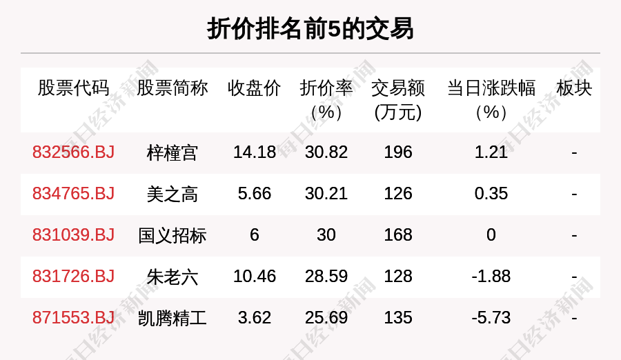 每经AI快讯,2022年4月26日,沪深两市一共发生132笔大宗交易,共成交13.9亿元,涉及83家上市公司。
