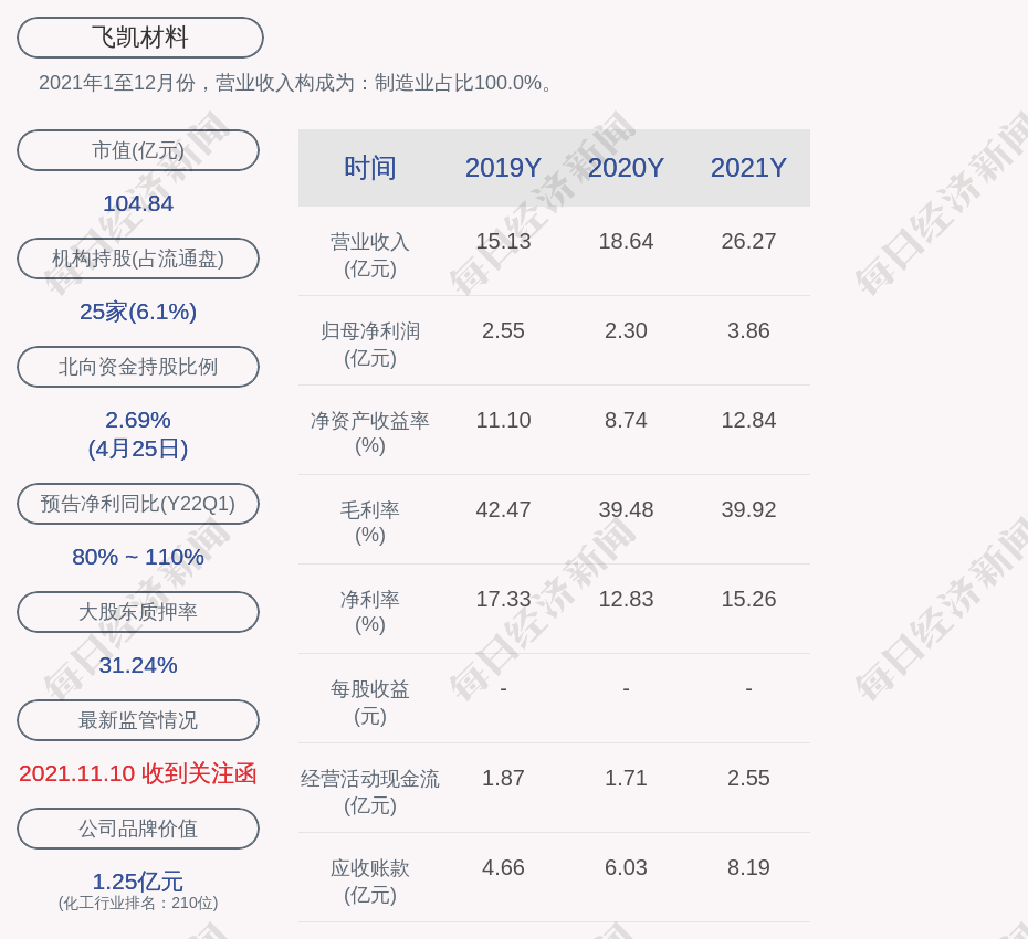 2021年1至12月份,飞凯材料的营业收入构成为:制造业占比100.0%。