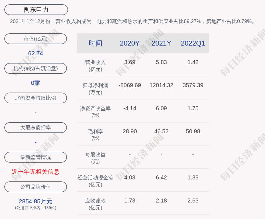 1. 近30日内无机构对闽东电力进行调研;