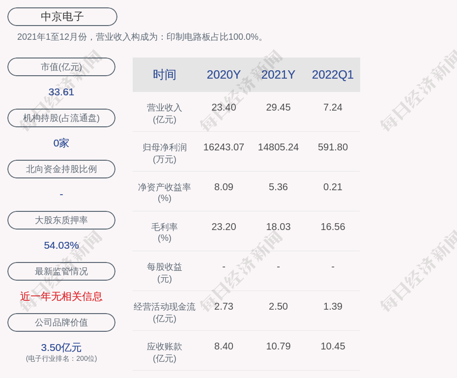 2021年1至12月份,中京电子的营业收入构成为:印制电路板占比100.0%。