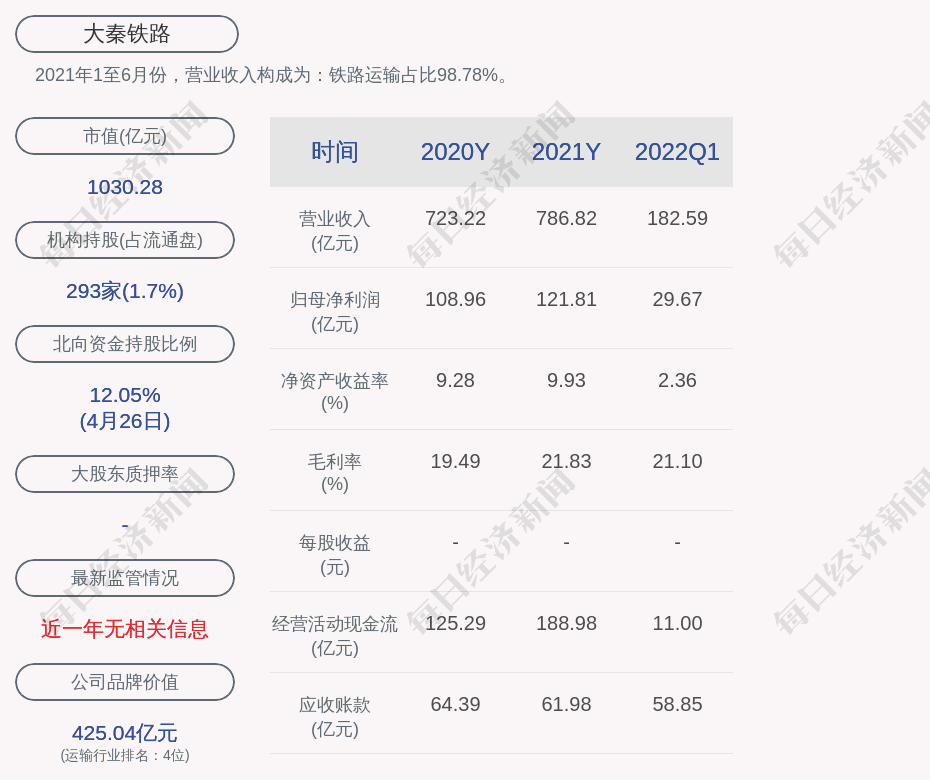2021年1至6月份,大秦铁路的营业收入构成为:铁路运输占比98.78%。