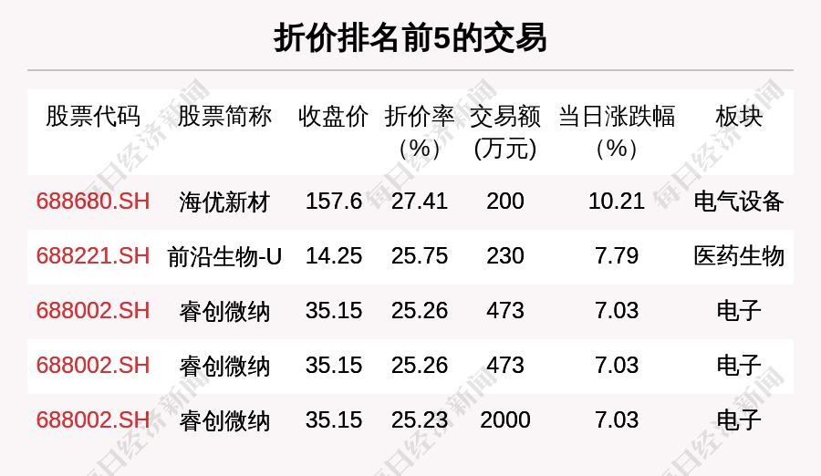 每经AI快讯,2022年4月27日,沪深两市一共发生153笔大宗交易,共成交17.79亿元,涉及80家上市公司。
