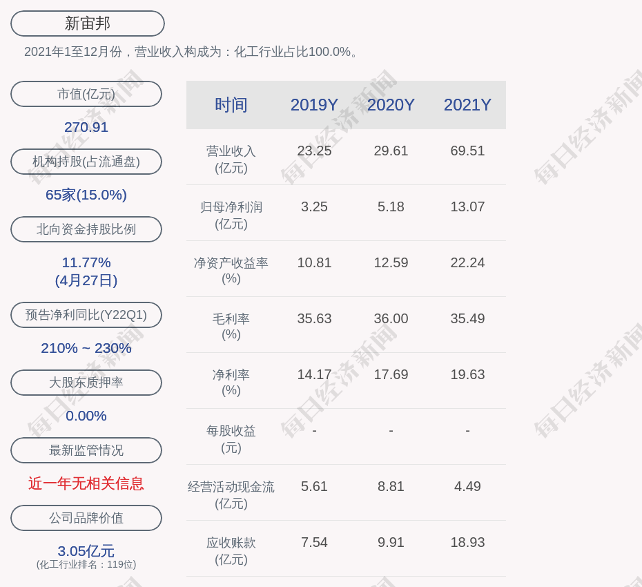 2021年1至12月份,新宙邦的营业收入构成为:化工行业占比100.0%。