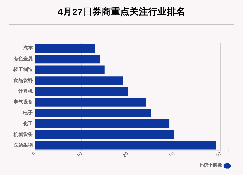 从券商对行业的关注度来看,券商关注个股数居前的行业分别是医药生物、机械设备、化工。