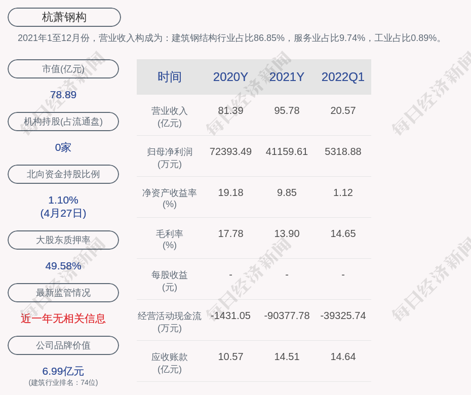 每经AI快讯,杭萧钢构(SH 600477,收盘价:3.33元)4月28日晚间发布一季度业绩公告称,2022年第一季度营收约20.57亿元;净利润约5319万元。