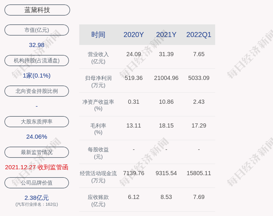 1. 近30日内无机构对蓝黛科技进行调研。