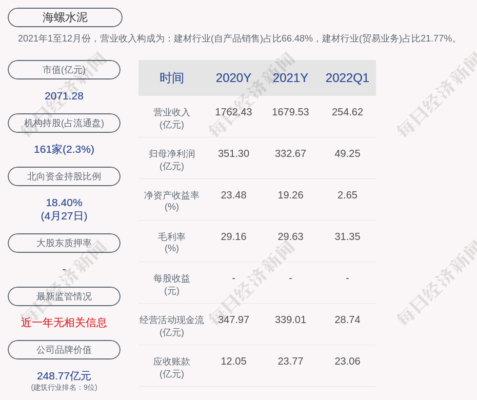 1. 海螺水泥近30日内北向资金持股量增加802.10万股,占流通股比例增加0.21%;