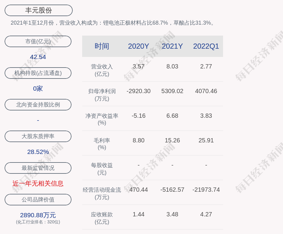 2021年1至12月份,丰元股份的营业收入构成为:锂电池正极材料占比68.7%,草酸占比31.3%。