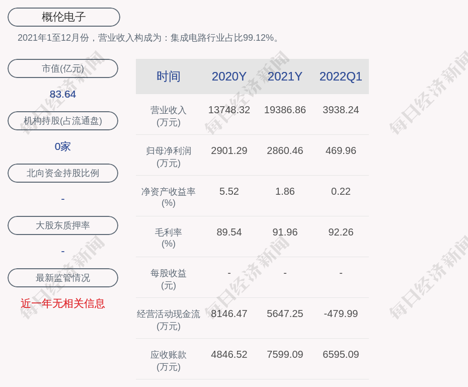 每经AI快讯,概伦电子(SH 688206,收盘价:19.28元)4月28日晚间发布一季度业绩公告称,2022年第一季度营收约3938万元;归属于上市公司股东的净利润约470万元。