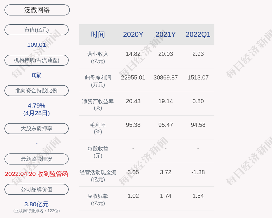 1. 泛微网络近30日内北向资金持股量增加108.34万股,占流通股比例增加0.42%;