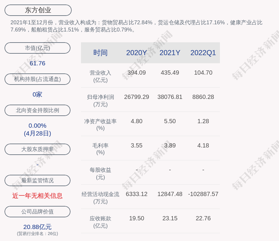 1. 东方创业近30日内北向资金持股量未发生变化;