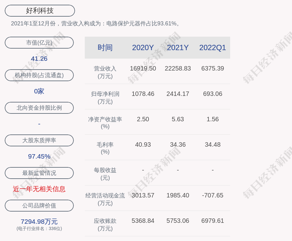 2021年1至12月份,好利科技的营业收入构成为:电路保护元器件占比93.61%。