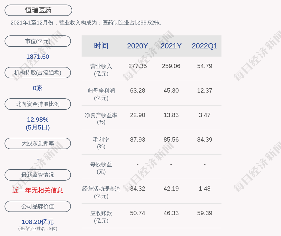 1. 恒瑞医药近30日内北向资金持股量减少6690.46万股,占流通股比例减少1.04%;