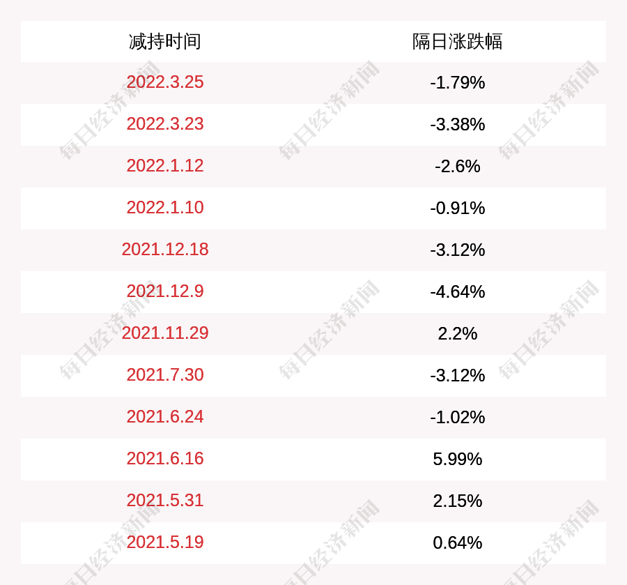 2. 惠伦晶体上次发布减持公告是2022年03月25日,第二个交易日下跌1.79%,惠伦晶体近一年共发布13次减持类公告。