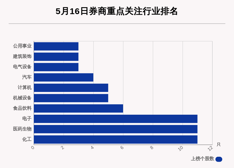 从券商对行业的关注度来看,券商关注个股数居前的行业分别是化工、医药生物、电子。