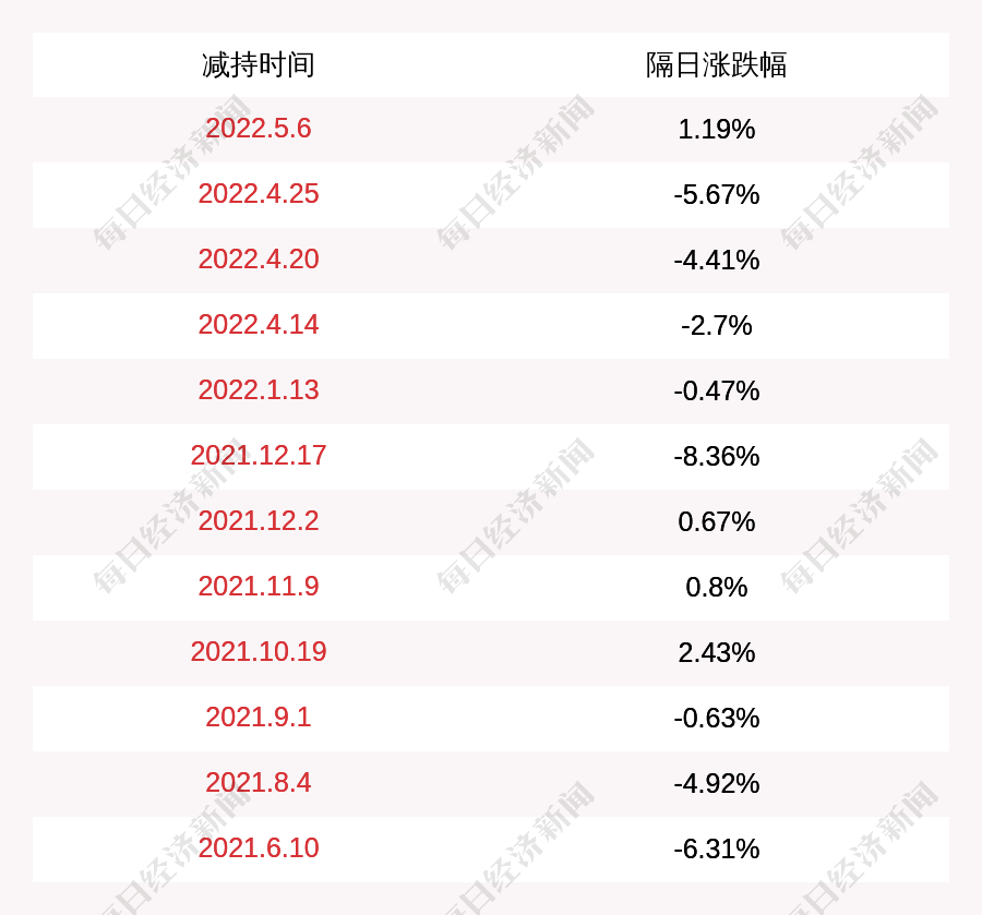 2. 派瑞股份上次发布减持公告是2022年05月06日,第二个交易日上涨1.19%,派瑞股份近一年共发布13次减持类公告。