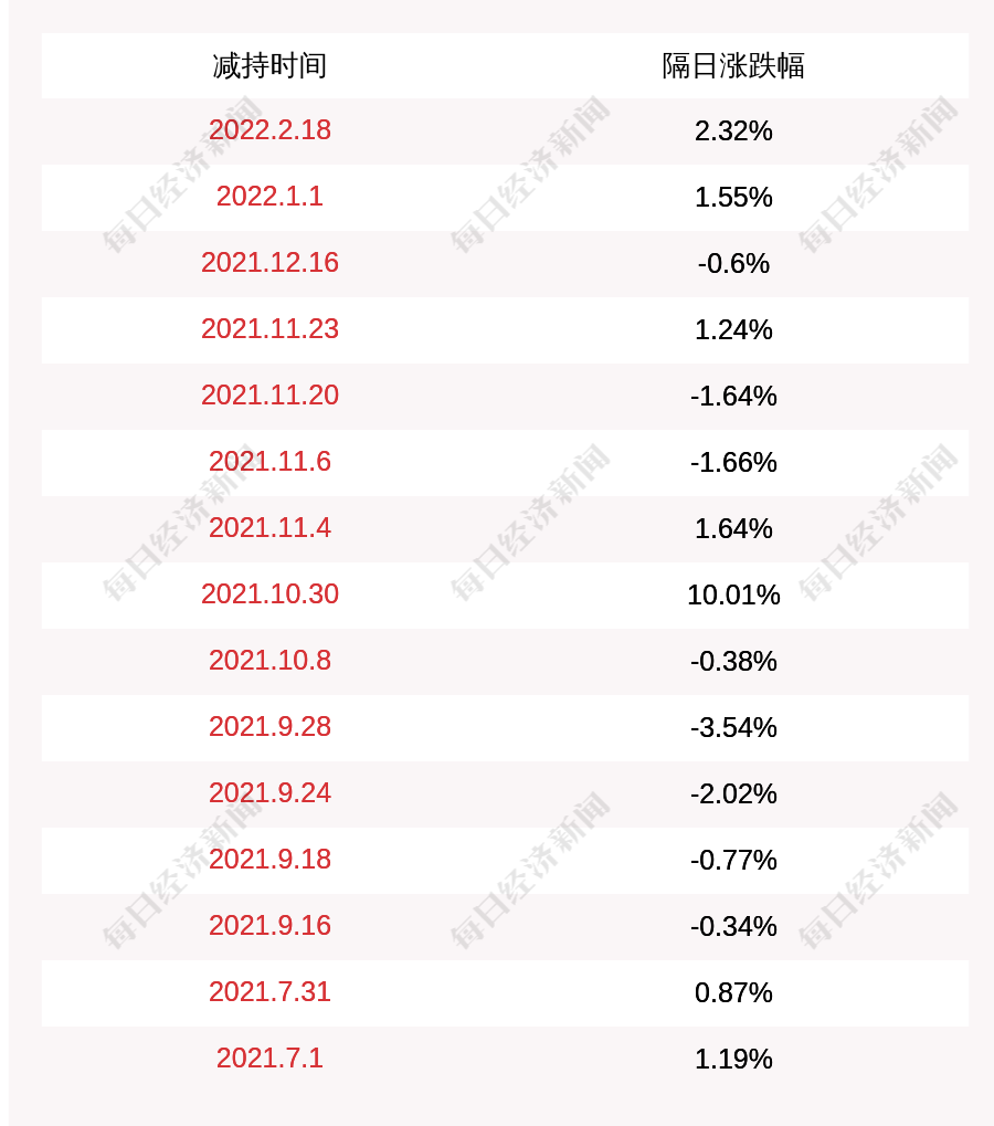 2. 新宏泰上次发布减持公告是2022年02月18日,第二个交易日上涨2.32%,新宏泰近一年共发布16次减持类公告。