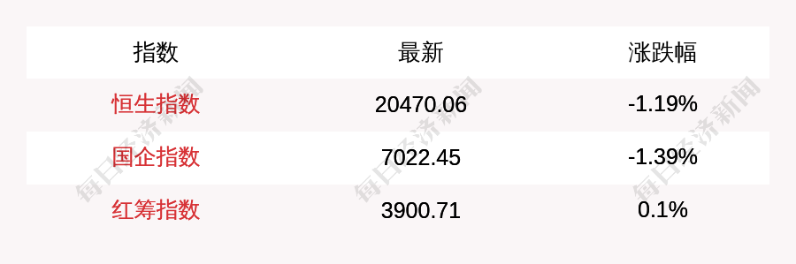 每经AI快讯:北京时间5月23日16:00,恒生指数收盘下跌247.18点,跌幅为1.19%,报收20470.06点;国企指数收盘下跌98.73点,跌幅为1.39%,报收7022.45点;红筹指数收盘上涨3.95点,涨幅为0.1%,报收3900.71点。南向资金当日净流入15.82亿港元。
