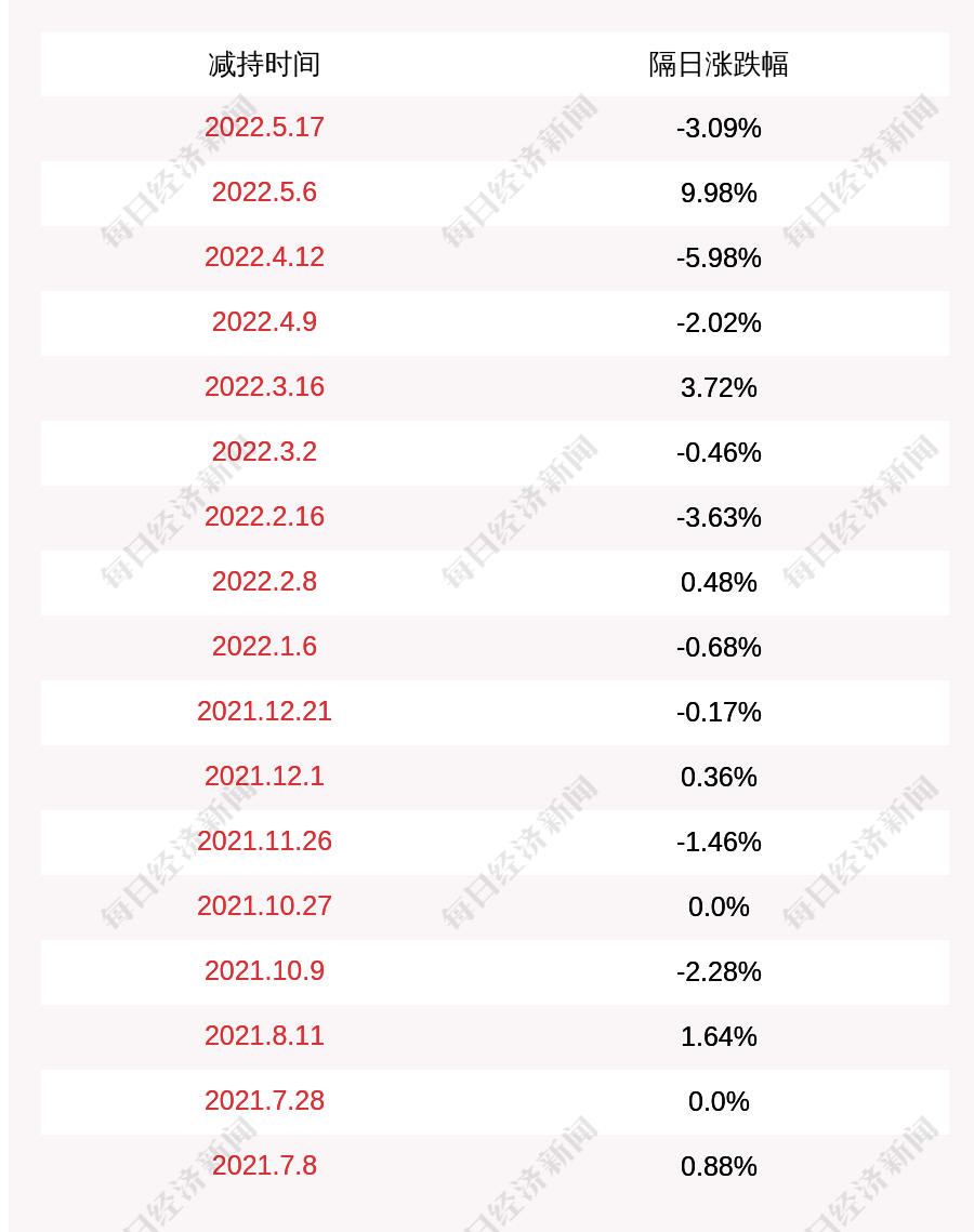 2. 建研院上次发布减持公告是2022年05月17日,第二个交易日下跌3.09%,建研院近一年共发布18次减持类公告。