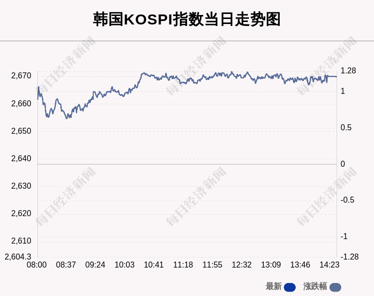 每经AI快讯:北京时间5月30日14:00,韩国KOSPI指数收盘上涨31.61点,涨幅为1.2%,报2669.66点。
