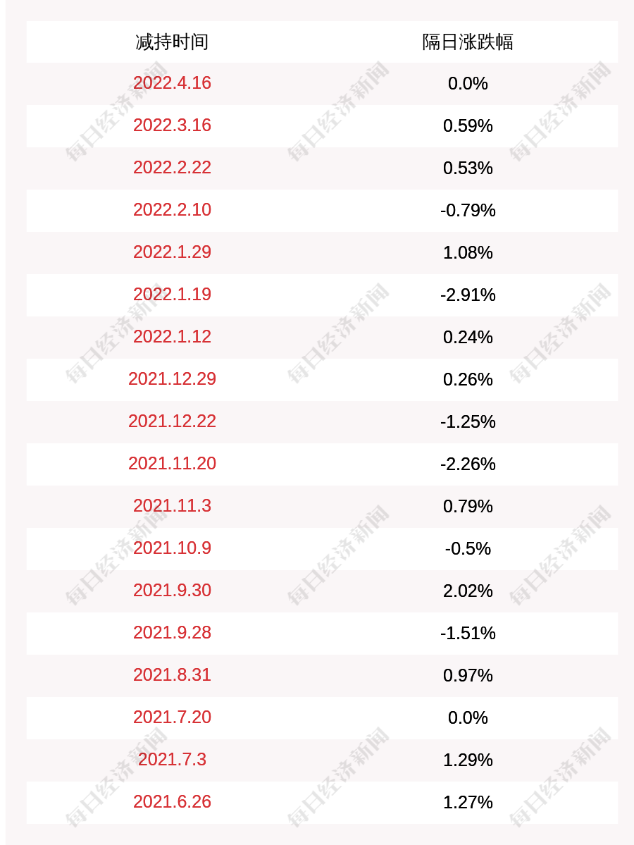 2. 梦洁股份上次发布减持公告是2022年04月16日,第二个交易日上涨0.0%,梦洁股份近一年共发布19次减持类公告。