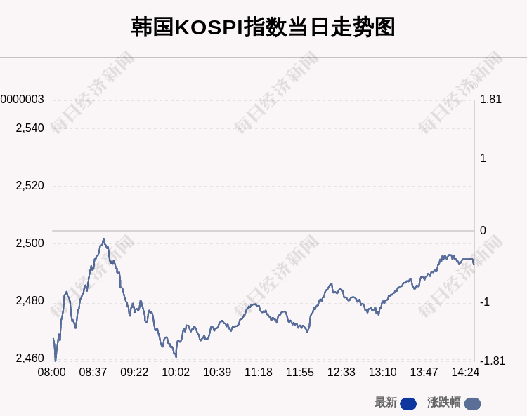 每经AI快讯:北京时间6月14日14:00,韩国KOSPI指数收盘下跌11.54点,跌幅为0.46%,报2492.97点。