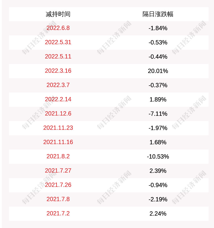 3. 容大感光上次发布减持公告是2022年06月08日,第二个交易日下跌1.84%,容大感光近一年共发布15次减持类公告。