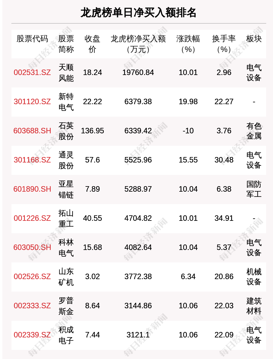 每经AI快讯,7月13日,共有41只个股上榜龙虎榜,天顺风能龙虎榜单日净买入额最多,达1.98亿元。