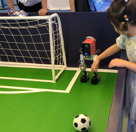 记者在某制造机器人设备的机电企业展台看到,两个不足半米高的双足机器人正在工作人员的操纵下踢足球,在等待算法加载的间隙,机器人会做压腿、劈叉等风格化动作,引得不少观众驻足。