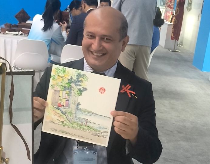 “这是我首次来到中国,此前对中国文化与传统所知甚少。抵达后,我见到了供观众体验传统文化的展位,这对我而言意义非凡。通过亲手制作传统手工艺品或绘画,我正在学习中国文化。我注意到,当我进行这些工艺或绘画创作时,中国人表现得十分友善、热情。我尝试了所有此类活动,它们不仅展示了中国的传统,更传递出传统背后的深厚意蕴。”
