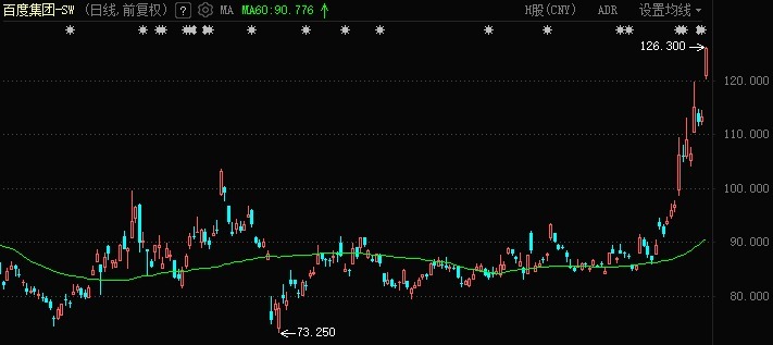 科技股中,百度集团-SW(09888.HK)大涨11%,蔚来-SW(09866.HK)上涨8%,京东集团-SW(09618.HK)上涨5%。